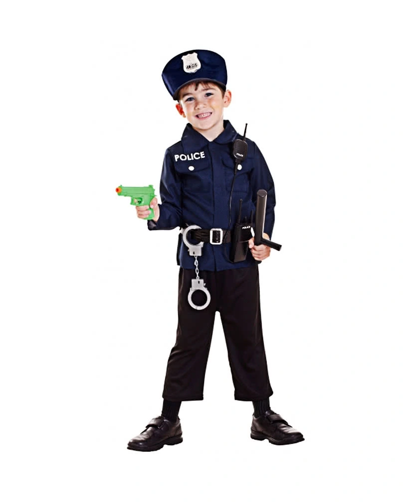 Ein Polizist hält nicht nur in der Stadt aber auch in seinem eigenen Zimmer Ordnung. Schon aus diesem Grund lohnt es sich, das Polizei Junge Set zu Halloween für Deinen Sohn zu wählen. Er selbst wird sein Polizei Kostüm lieben, da die Nachbarn ihm in seiner Polizei Uniform beim “Trick or Treat” , viele Süßwaren geben werden