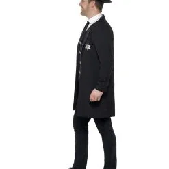 Die Lieferung enthält ein Black Sheriff Plus Size Kostüm für Herren. Es beinhaltet ein länger geschnittenes schwarzes Jacket, ein Fake-Hemd, welches unter der Knopf-Weste hervor schaut, eine Krawatte sowie einen Cowboy-Hut. Der Stoff ist weich und liegt angenehm auf der Haut. Du erhälst das Plus Size Sheriff Kostüm in den Größen XL oder XXL. Einen Revolver als Zubehör findest du mit unserem Buntline Revolver 12 Schuss in unserem Shop. Für die Damen ist das Cowgirl Kostüm mit Cowboy Hut das perfekte Western-Kostüm.