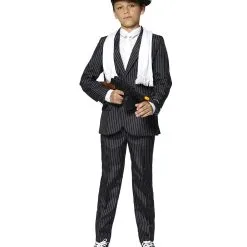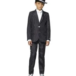 Schwarzer Nadelstreifen Kostüm Anzug für Kinder & Gangster Kostüme