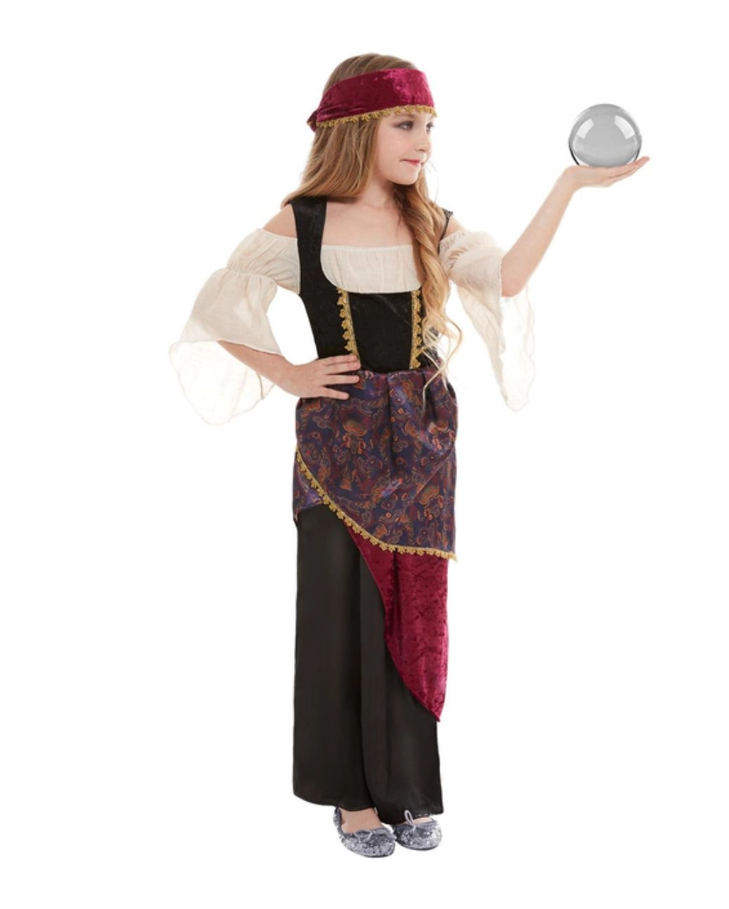 Als Gypsy Mädchen mit magischen Fähigkeiten wird deine Kleine schon vor Fasching wissen, dass sie die meisten Kamelle abbekommt. Mit dem Hellseherin Deluxe Kostüm für Kinder ist sie als geheimnisvollen Madame Fortuna unterwegs. Ihrer magischen Ausstrahlung ist es zu verdanken, dass sie mit vollen Taschen nach Hause kommt. Einem temperamentvollen Gypsy Mädchen kann eben man auch an Halloween nichts abschlagen.