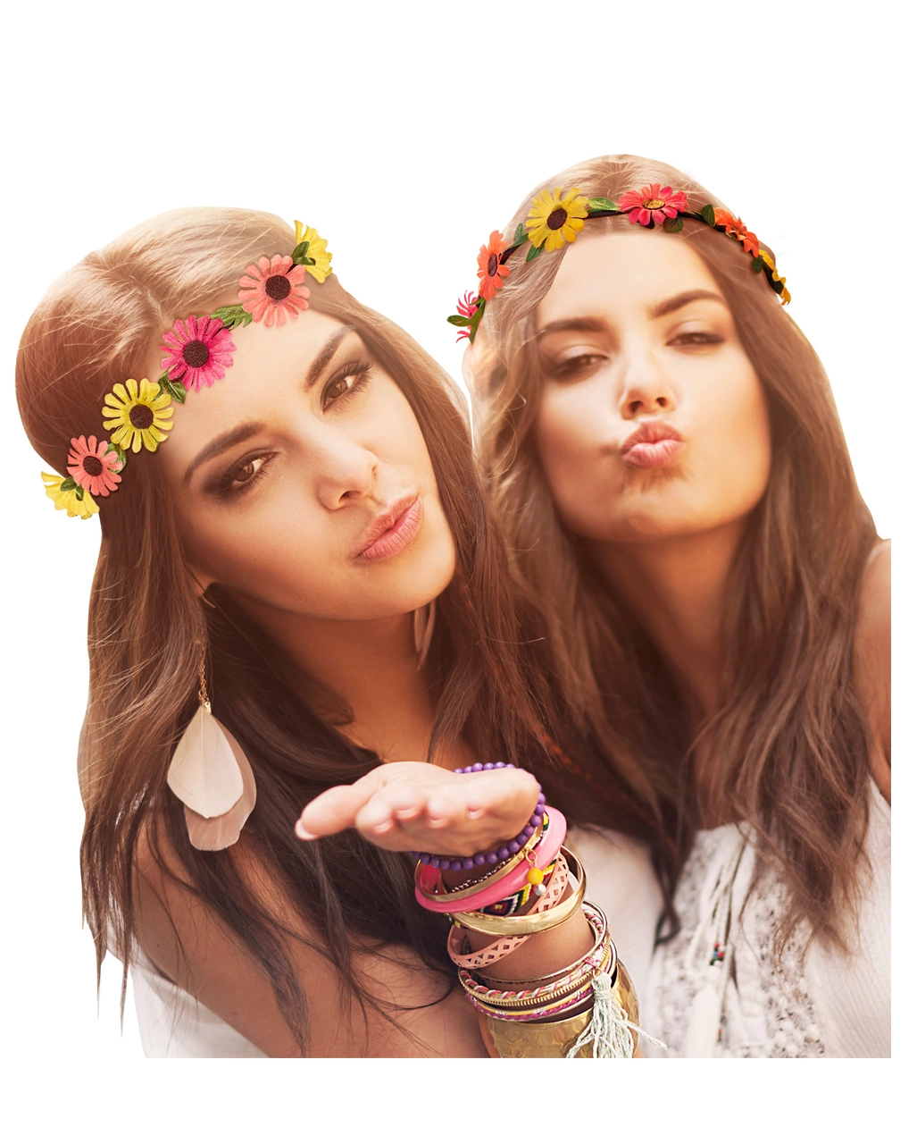 In den 60´s waren für Flower Power Girls Blumen im Haar ein Muss. Lasse auf der nächsten Mottofete die Ära der gechillten Klänge und bunten Farben aufblühen. Das Hippie Blumen Haarband verleiht deinem Faschingskostüm eine individuelle Note und katapultiert dich direkt auf eine ausgelassene Woodstock-Party. Lebe den Frieden und schmücke dein Haupt mit dem Hippie Blumenhaarband. Auch für den Strand und sommerliche Festivals ist das 60´s Kopfschmuck ein tolles Zubehör.