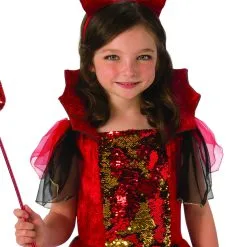 Funkelndes Teufelin Kostüm für Mädchen mit Wende-Pailletten