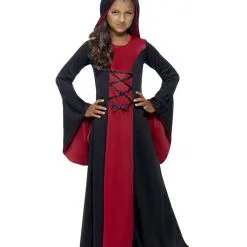 Mit dem Mittelalter Vampir Kinderkostüm wirst du auf historischen Kostümfesten zum edlen Blickfang. Wie in einem Märchen macht dich das Fantasy Kapuzenkleid zu einer holden Maid des tiefen Mittelalters. So wandelbar wie das Mittelalterkleid bist damit auch du – als Burgfräulein, Vampir oder Hexe kannst du das Mädchenkostüm mit den richtigen Accessoires anpassen.