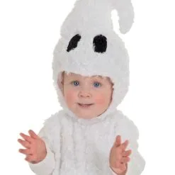 Das Geist Plüsch Kinderkostüm beinhaltet die Mütze mit Klettverschluss und ein Body mit Löchern für Arme und Beine und einem Klettverschluss am Rücken. Die Mütze hat oberhalb des Gesichtes zwei schwarze Augen und ein spitz zulaufendes Ende. Weitere süße Tierkostüme für Babys sind das Eisbär Plüsch-Kinderkostüm und das Teddy-Kuschelbär Baby Kinderkostüm.