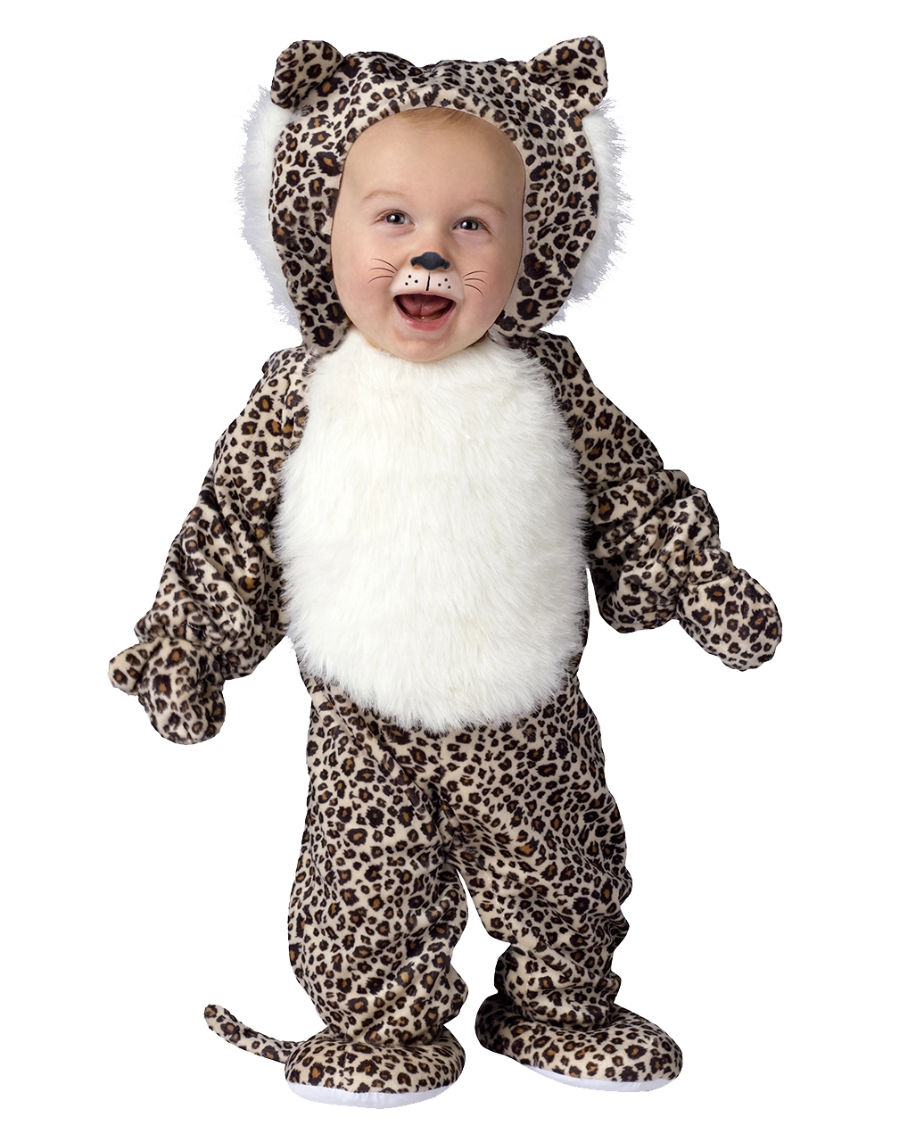 Der kuschlige kleine Leopard ist aus weichem Plüschstoff und besteht aus gemustertem Leopardenfell mit Kapuze und Handschuhen. Das exclusive Leoparden Kinderkostüm begeistert die kleinen ebenso wie alle Eltern und ist eines der beliebtesten Kleinkinderkostüme für Halloween, Fasching und Karneval.