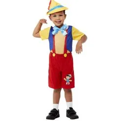 Das Puppen Jungen Kostüm für Kinder ist das ideale Kleinkinder Halloween Kostüm. Es ist farbenfroh und originell. Der Jumpsuit des Marionetten Outfits für Halloween zeigt eine rote Hose mit roten Hosenträgern und gelben Knöpfen daran. Auf dem linken Hosenbein ist eine Puppenfigur abgebildet, die an den legendären Pinocchio erinnert. Das angedeutete Hemd ist gelb, genau wie der süße Kostümhut. Den Kragen ziert zudem noch eine süße blaue Schleife. Weitere geniale Karnevalskostüme für Kinder findet ihr hier im Shop.