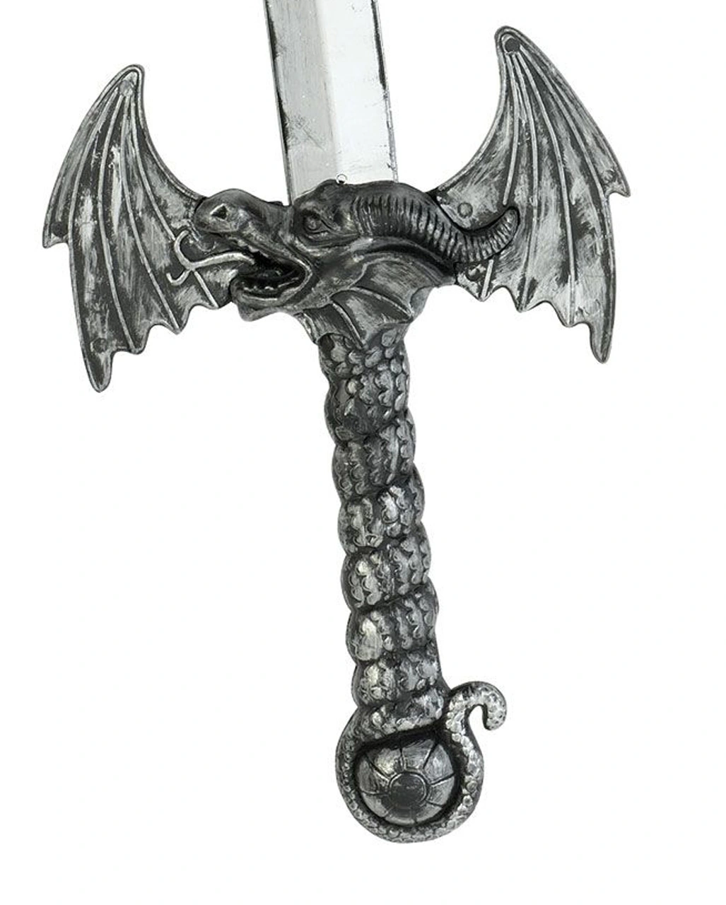 Das authentische Ritter Schwert hat einen schicken Griff in Form eines Drachen und eine ca. 43 cm lange, silberne Klinge. Um deinen Look zu komplettieren, empfehlen wir das Kostüm Tapferer Ritter und die Doppelte Drachenaxt.