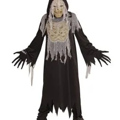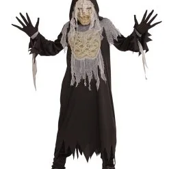 Das Schreckliche Mumie Kinderkostüm macht seinem Namen alle Ehre. So ein Halloween Mumien Kostüm ist nämlich ziemlich schrecklich anzusehen. Die Robe der Halloween Verkleidung für Kinder hängt in Fetzen, was dafür spricht, dass du einige Jahre im Grab gelegen hast. Die Handschuhe, die zu dem Geister Kinder Kostüm gehören, lassen deine Finger lang und spitz aussehen. Highlight des gruseligen Trick or Treat Verkleidung ist die Maske, die ein schauderhaftes Mumiengesicht zeigt.