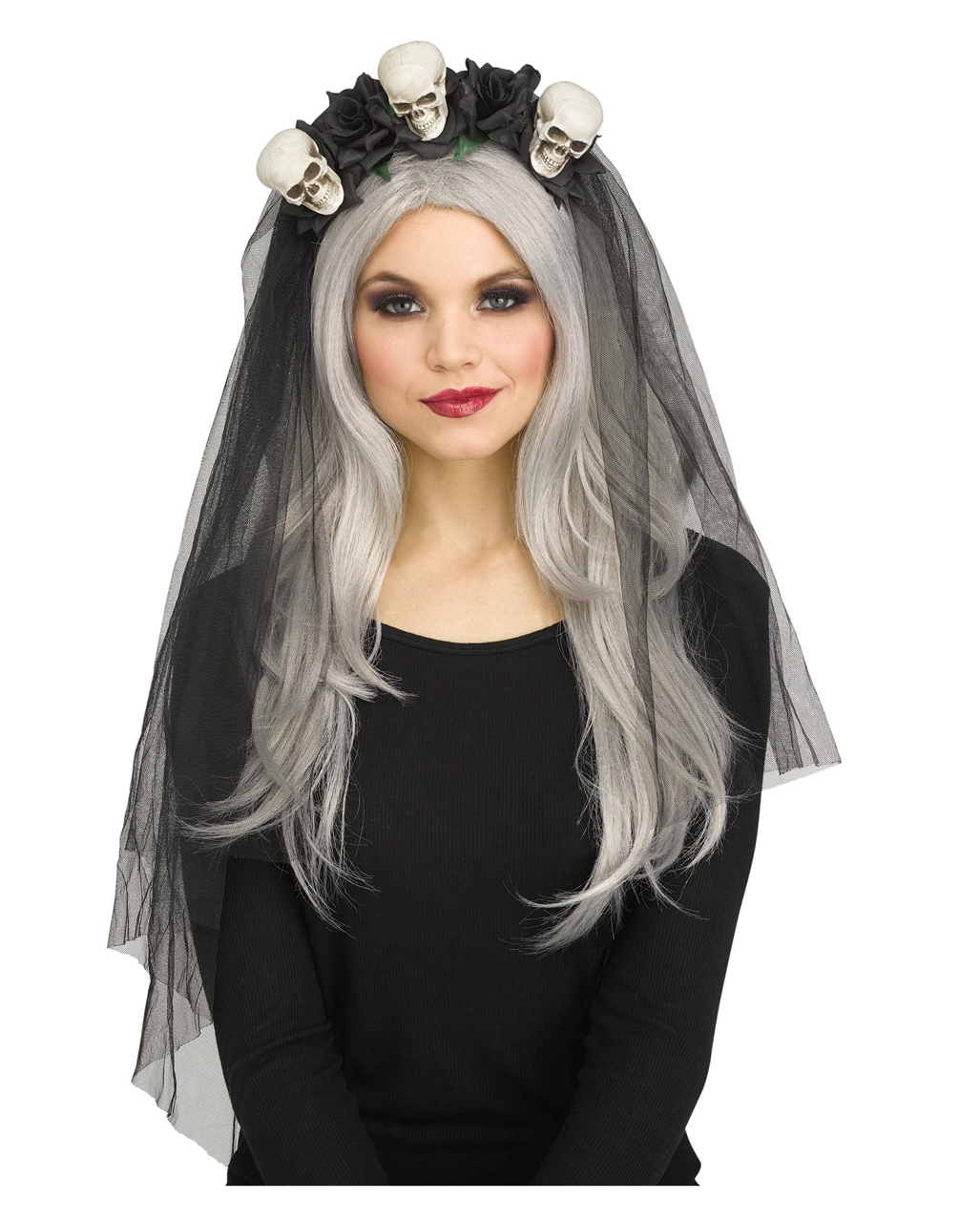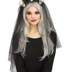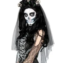 Schwarzer Brautschleier mit Totenschädeln