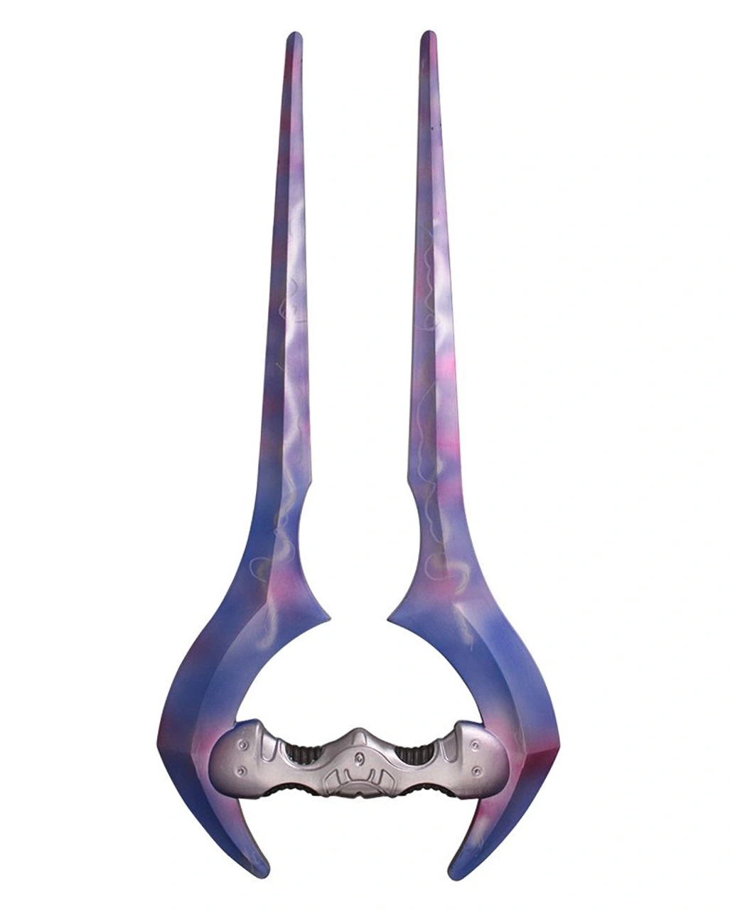 Die SciFi Energieschwert Schaumstoff Waffe besticht durch ihre futuristische Optik. Geformt wie ein Science-Fiction-Raumschiff, stellen die violetten “Schneiden” die Klingen der LARP-Waffe dar. Der silberne Griff des Halloween-Kostümaccessoires liegt angenehm in der Hand. Durch das verwendete Material – Fiberglaskern mit Schaumstoff – eignet sich das Science-Fiction-Schwert perfekt für heroische Schlachten, ist dabei aber völlig ungefährlich. Noch mehr SciFi-Waffen wie das Blaues LED Tri-Saber Lichtschwert mit Sound und den Halo Nadelwerfer Master Chief haben wir ebenfalls im Karneval-Universe.de!