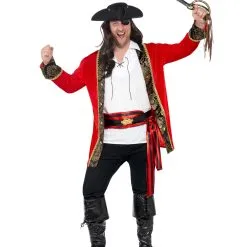 Piratenkostüm für Herren mit Taillenschärpe für kräftige Kerle