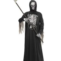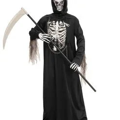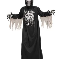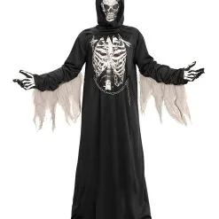 Grim Reaper Verkleidung mit Knochenprint, Fransenärmel und Kette als Verzierung