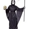 Die schwarze Kutte des Sensenmann Kinderkostüms mit Kapuze ist Bodenlang und hat lange, fransige Fledermausärmel. Mitgeliefert wird ein Gürtel aus dem schwarzen Stoff der Kutte. Verkleide dich passend zu deinem Sprössling als Sensenmann oder Totengräber mit dem Sensenmann Kostüm oder dem Halloween Sensenmann Kostüm mit Maske 5-tlg..
