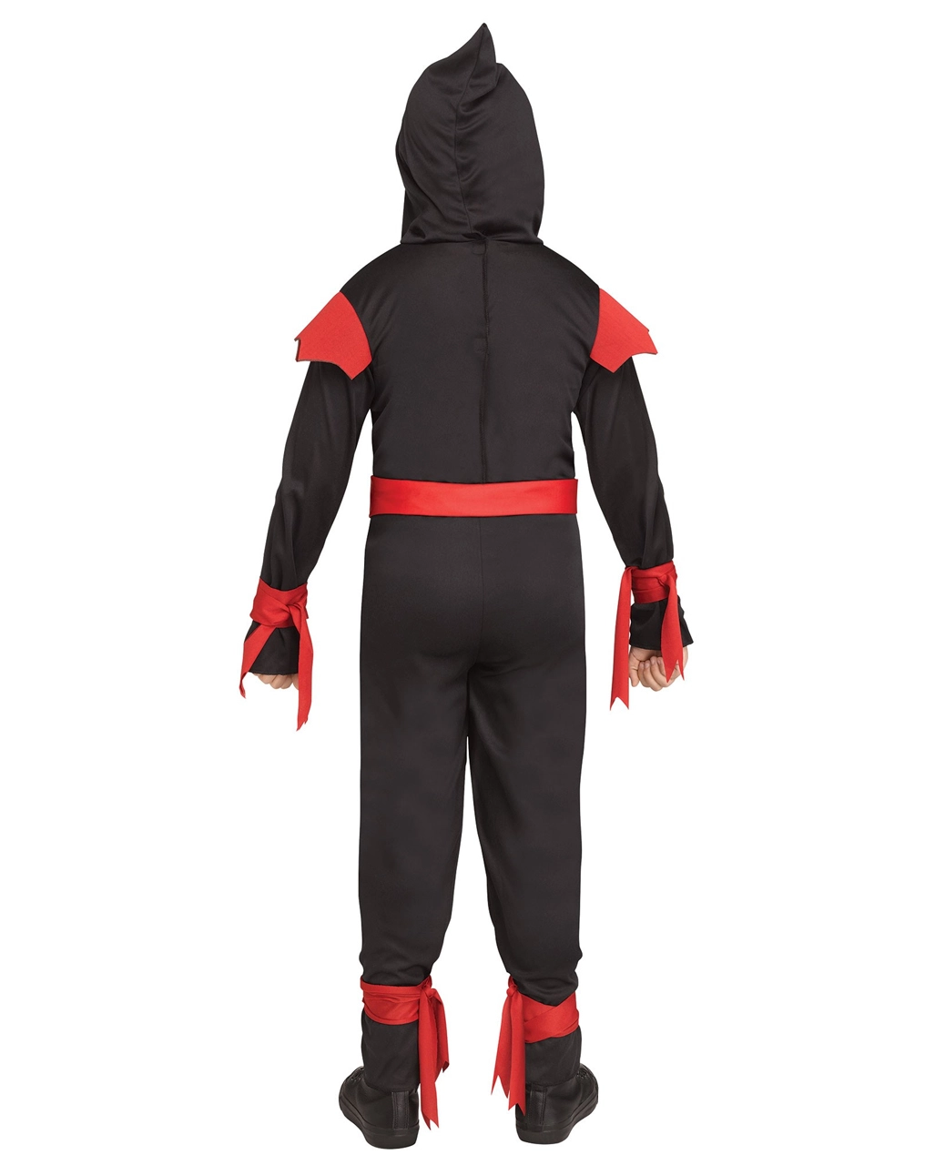 Das Totenschädel Ninja Kinderkostüm besteht aus einem Kapuzen Overall mit Bändern an Armen und Knöcheln, einem Gesichtstuch als Ninja-Maske und einem roten Gürtel. Auf der Brust befindet sich ein Totenkopf als Eyecatcher, welcher dem Kostüm einen gefährlichen Look verleiht. Das Totenschädel Kinder Ninja Kostüm ist in S-L Größe erhältlich und aus weichem Stoff gefertigt. Zum Unisex-Ninja Kostüm-Overall passt unser Samuraischwert mit Scheide