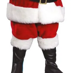 - Inhalt: 1 x Weihnachtsmann Kostüm mit üppigem weißen Kunstfell als Verzierung, 1 x Jacke mit Reißverschluss, 1 x verstellbarer schwarzer Gürtel, 1 x Hose mit Seitentaschen, 1 x Weihnachtsmanmütze, 1 x Stiefelgamaschen, 1 Paar weiße Nikolaushandschuhe mit Druckknopf